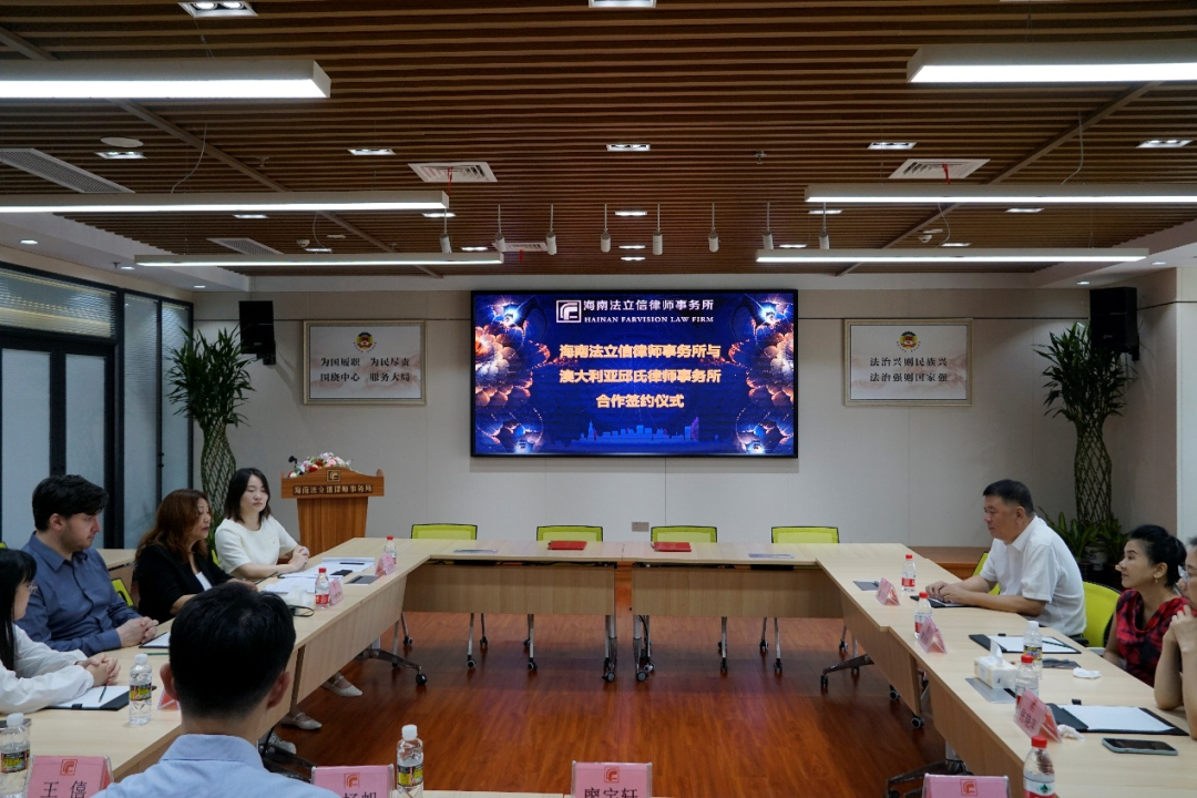 2025年10月19日中午,海南法立信律师事务所迎来了远道而来的贵宾——澳大利亚邱氏律师事务所的首席律师Kathy Qiu及Peter Lacivita律师。本次我所出席的人员有:法立信律所党委书记、主任张申立,法立信工会主席陈柏静,党委委员、青工委主任陈扬帆,三亚分所副主任郝恩琳,张晓萍博士,郑鹏博士,陈欣如律师,王僖律师和廖宇轩实习律师。